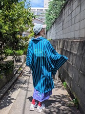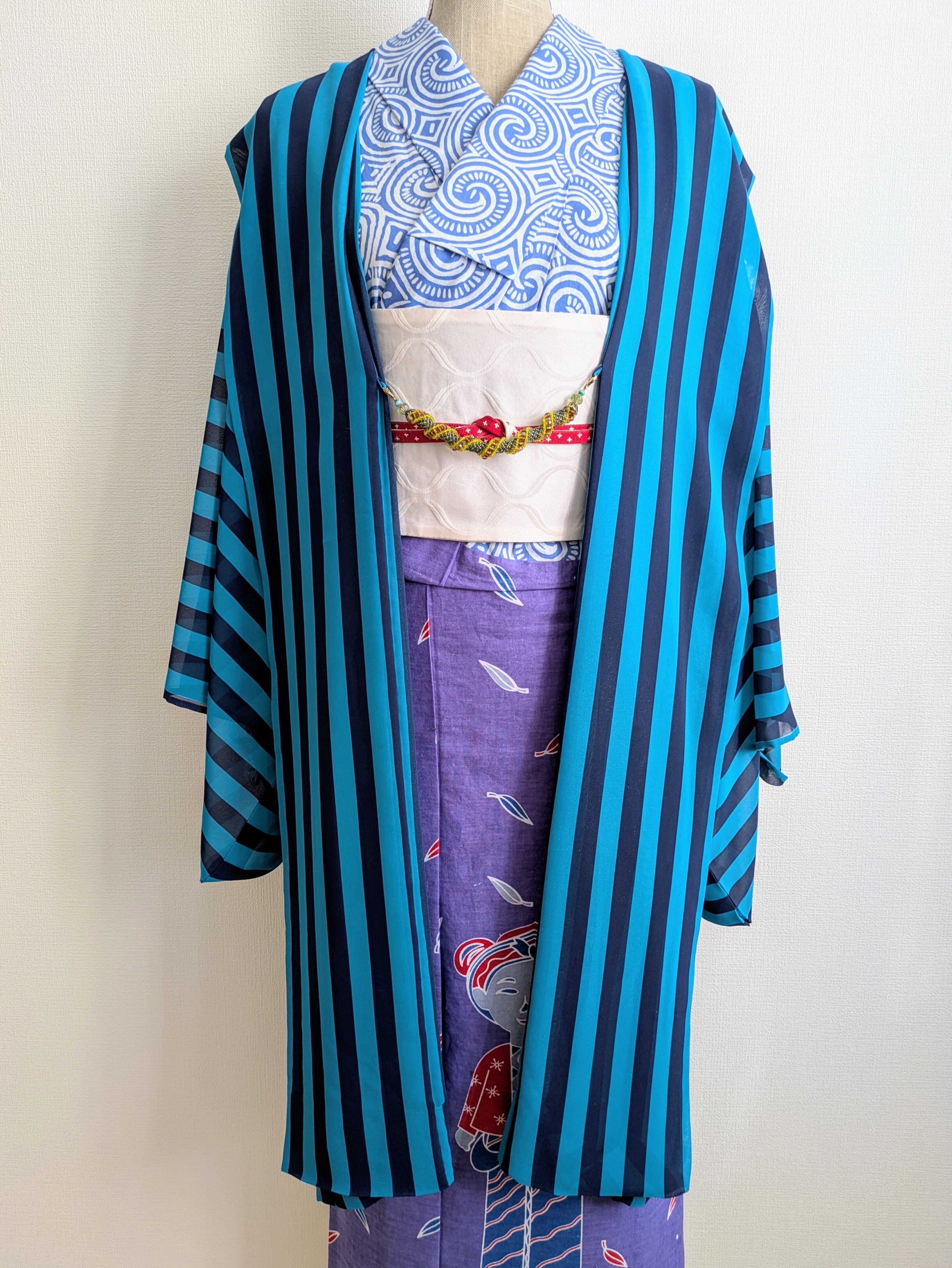 紺と水色の組み合わせが、個性を際立たせる薄羽織り。