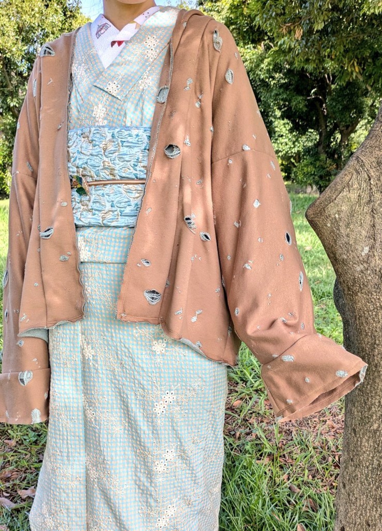 この羽織は、程よいダメージ加工が施されており、リラックスした着心地を実現。厚みのあるスウェット生地は、肌触りが良く、軽やかな着用感で、さらっと羽織るだけでコーディネートが決まります◎