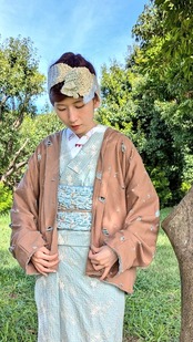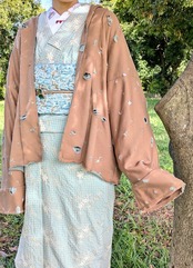 着物の上はもちろん、デニムやワンピース、スカートにも合わせやすく、シンプルながらも魅力的な一枚です。