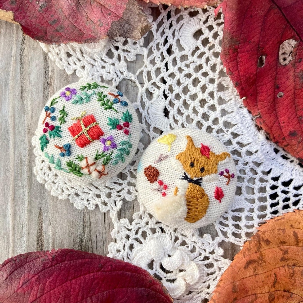 刺繍で仕立てた帯留めです。