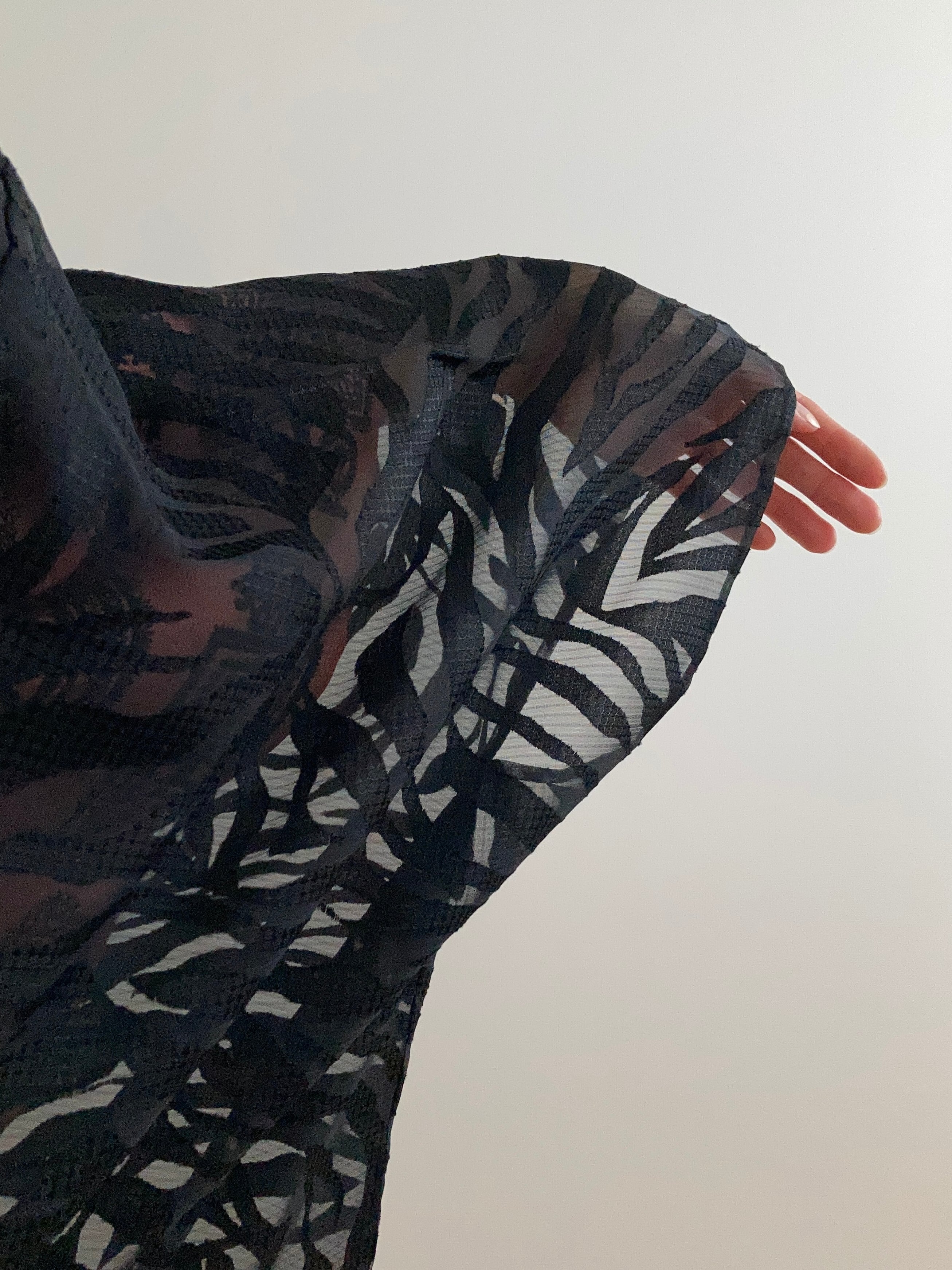 衿を折り返して羽織るとプリーツが現れ、ショールをかけているようなドレッシーな雰囲気に!